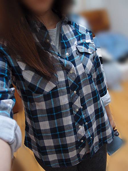 LEVIS襯衫,藍色線中間還暗藏銀色的亮亮線,扣子部分是用壓扣,超方便又好看~