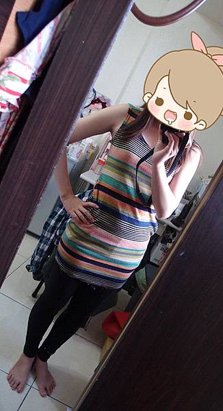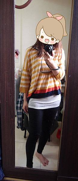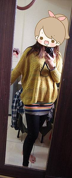 ▲執事挑的橫紋罩衫,有點難度,目前知道內搭白色有點醜。