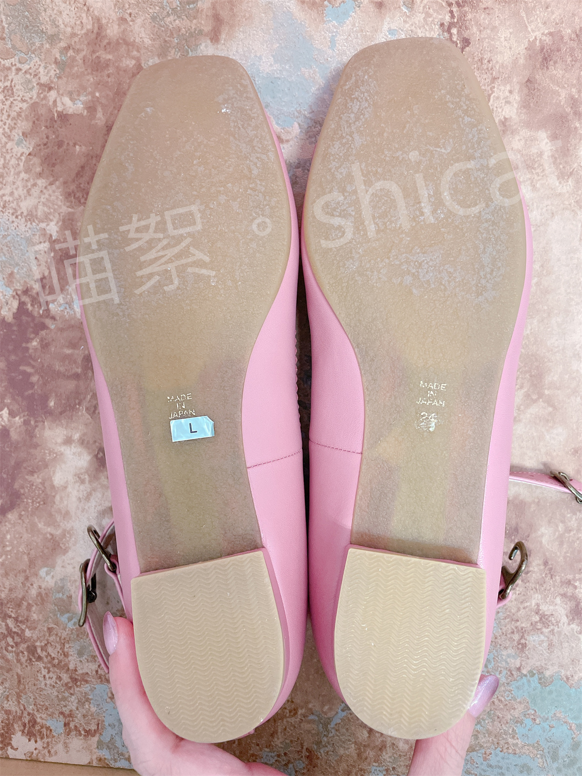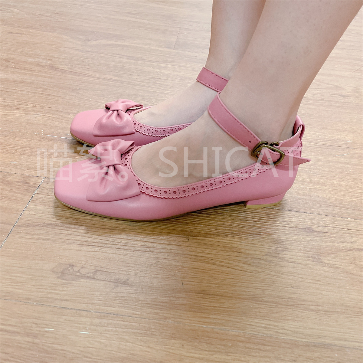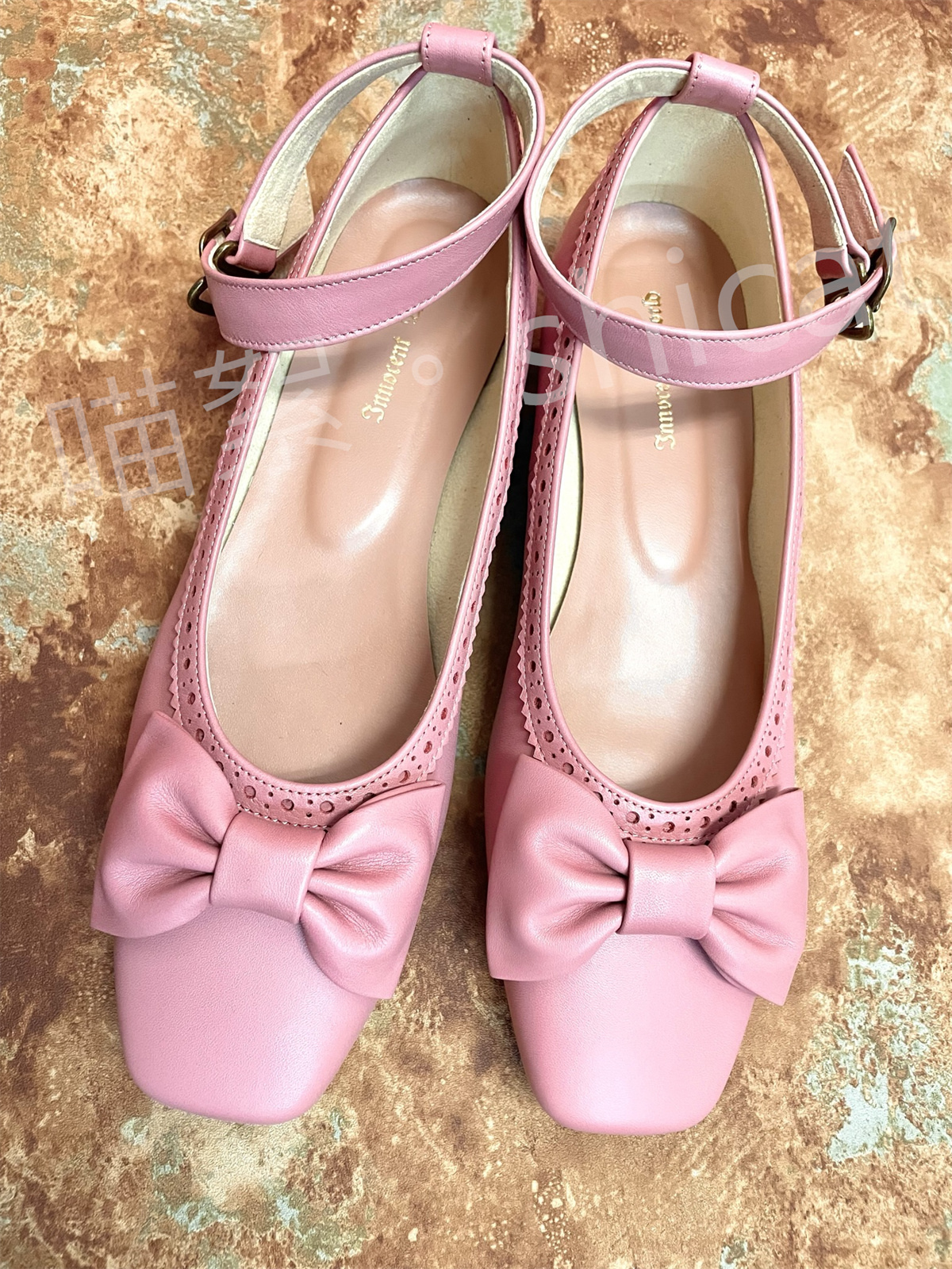 有點像芭蕾舞鞋的方頭鞋,蝴蝶結做的超漂亮,是固定在鞋面上的。