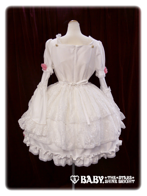 裙擺的玫瑰花跟袖子上的玫瑰花都是用緞帶做成,BONNET上是用假花